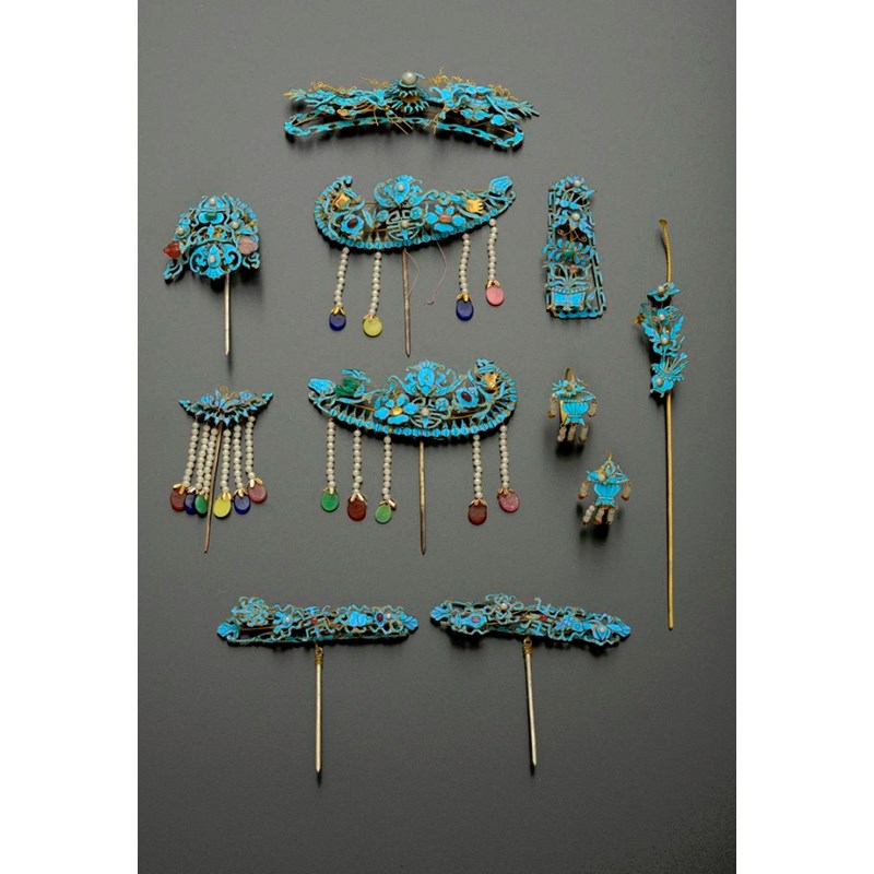 清 點翠耳飾及頭飾 一組十一件