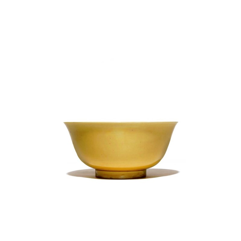 A CHINESE YELLOW GLAZED BOWL KANGXI 1662-1722 The gently flaring body raised on a straight foot
