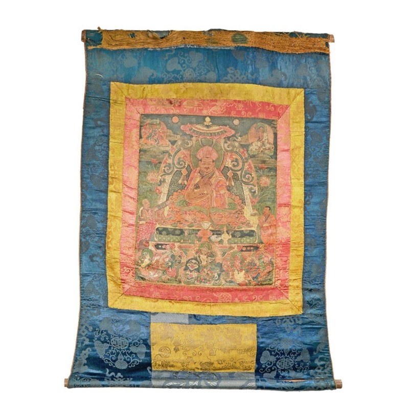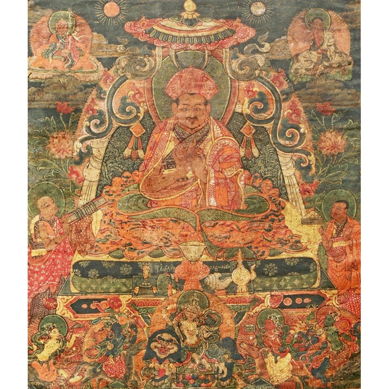 A RARE BHUTANESE THANGKA 19TH CENTURY Depicting the seated figure of Je Jampyel Drakpa (1766-1834)