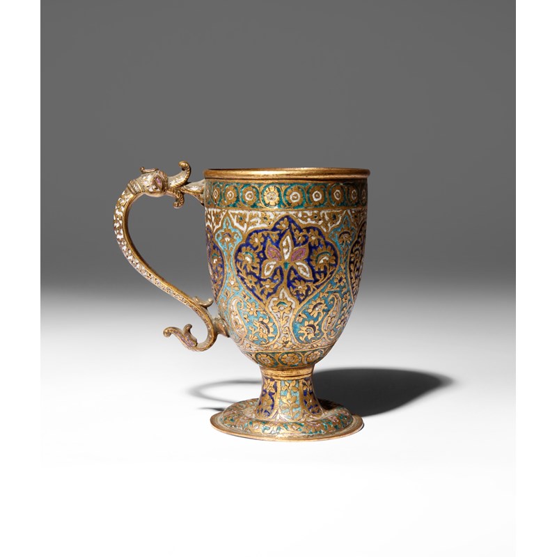A KASHMIR GILT-BRONZE CHAMPLEVE ENAMELLED CUP