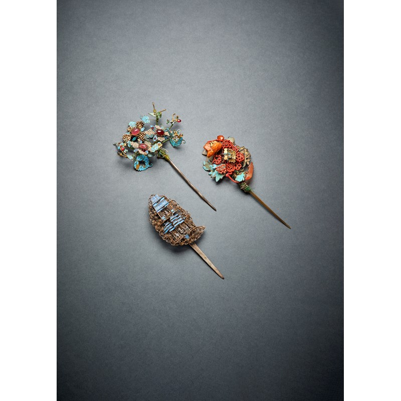 清 御製點翠髮簪 一組三件