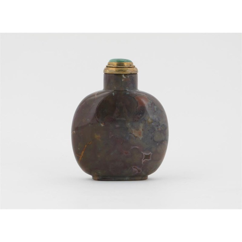 A Chinese purple agate snuff bottle, 19th century. With a flattened ovoid body, 7.7cm.