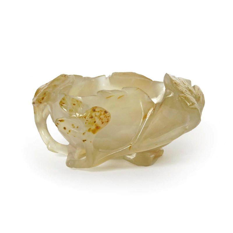 A CHINESE AGATE SMALL WATER POT 19TH CENTURY Carved as a curling leaf