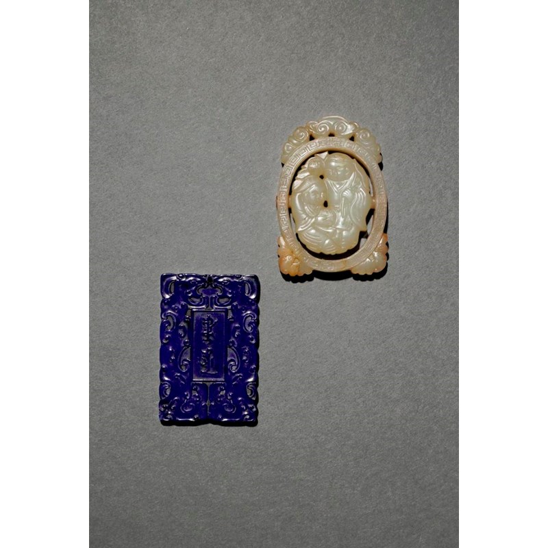 TWO CHINESE PLAQUES QING DYNASTY OR LATER One in celadon jade
