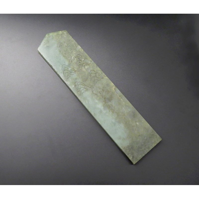 The highly polished surface carved with four stylised mountains, 27.8cm.