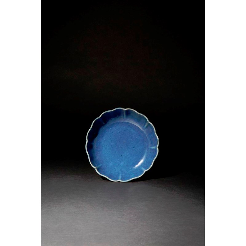 The lobed rim formed as petals, decorated in a smoky-blue glaze, 15.1cm.