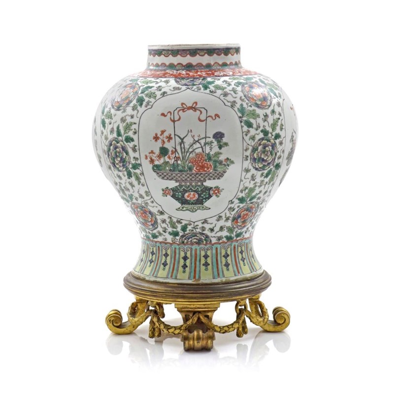 A CHINESE FAMILLE VERTE VASE 19TH CENTURY Decorated with four panels of baskets on a floral ground