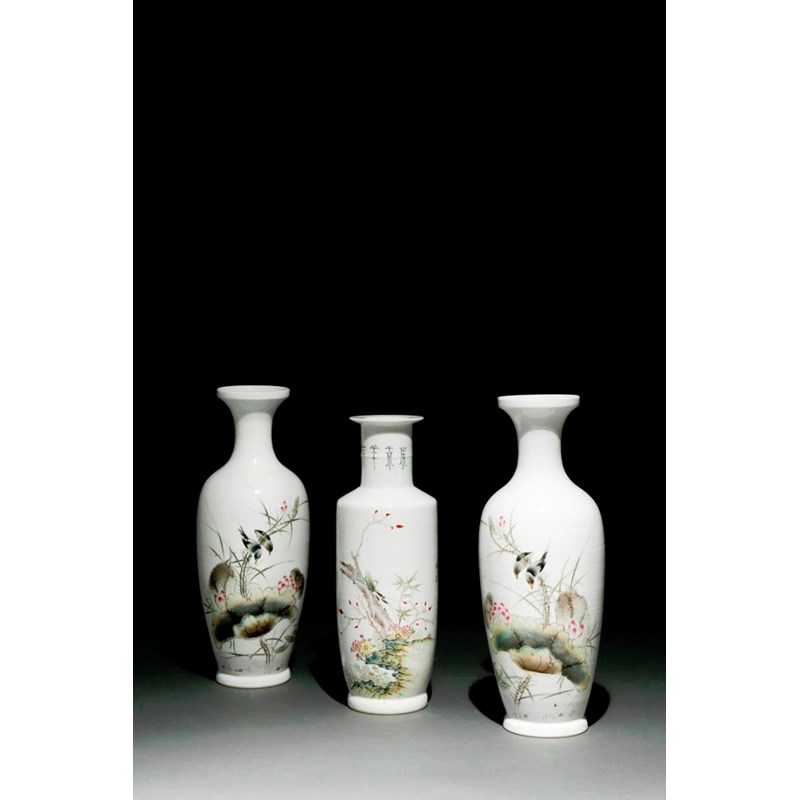 THREE CHINESE FAMILLE ROSE VASES PROBABLY REPUBLIC PERIOD A pair painted with birds and lotus