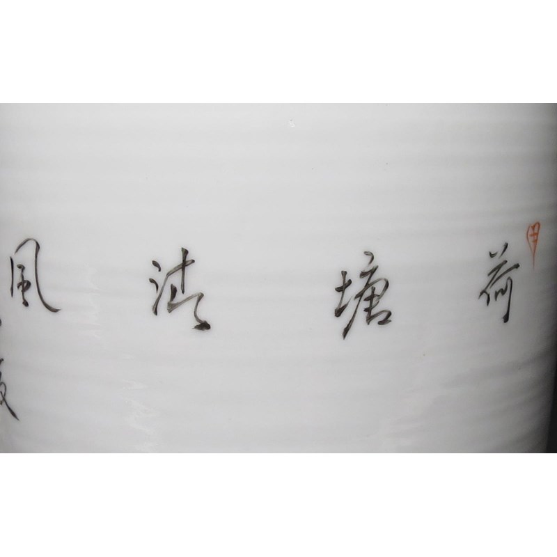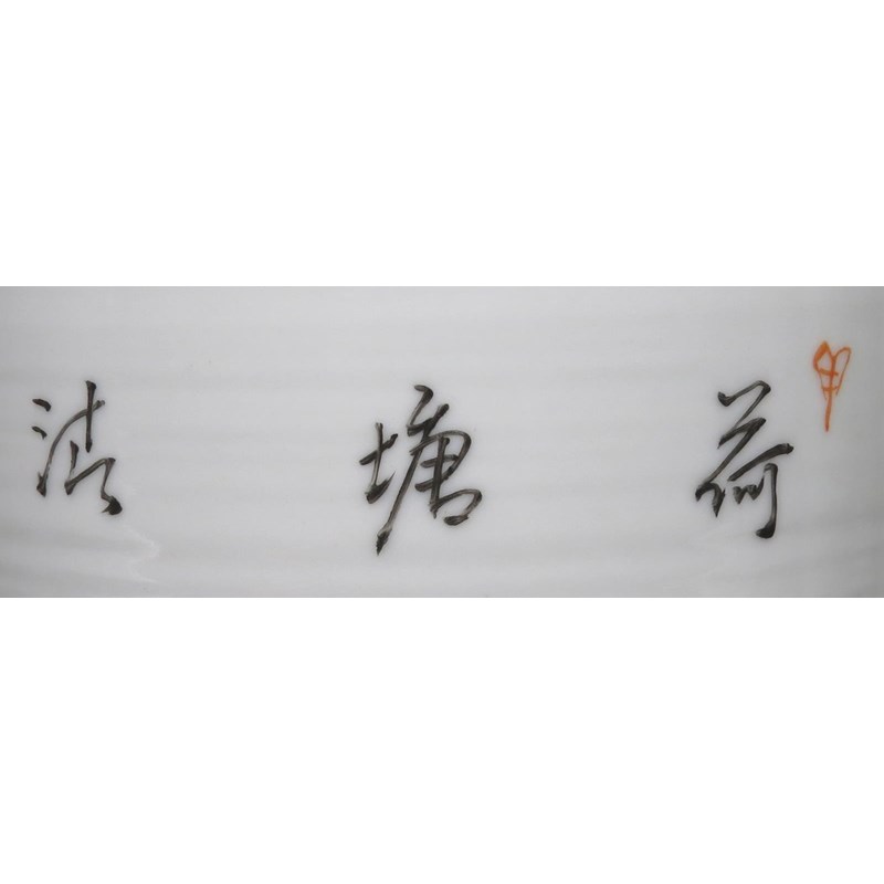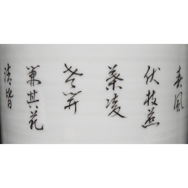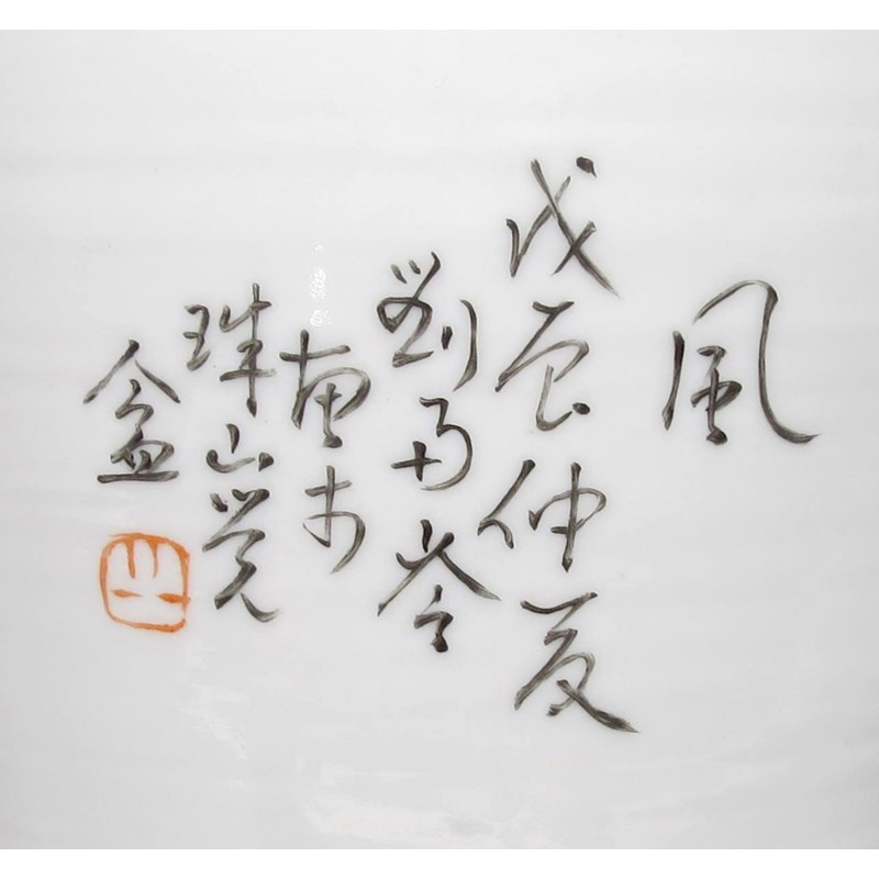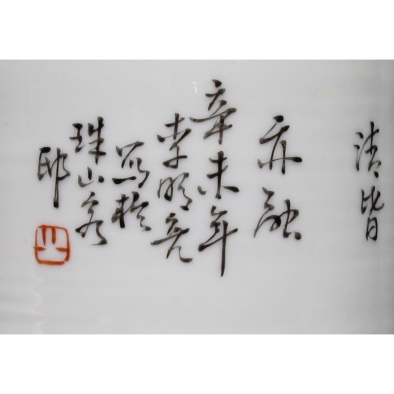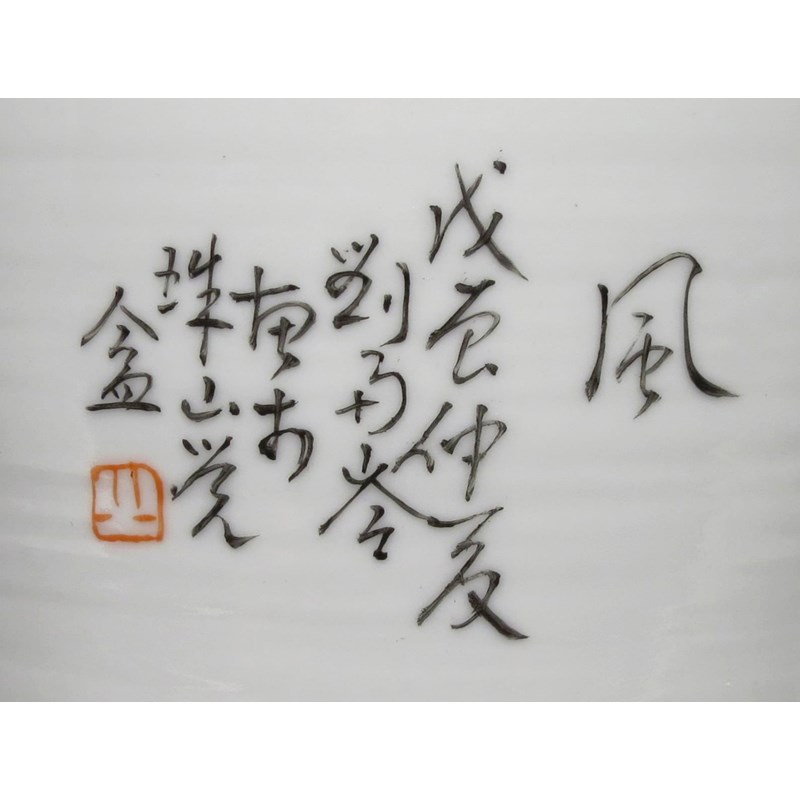 A pair painted with birds and lotus, the third with a praying mantis, all with calligraphy to the reverse, 33cm and 30.5cm respectively. (3)
