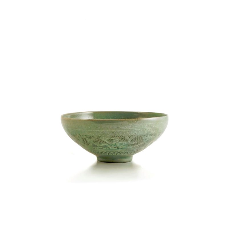 A KOREAN INLAID CELADON GLAZED BOWL 12TH CENTURY The U-shaped body decorated with slip
