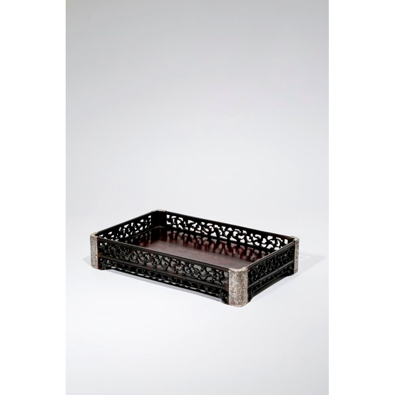 A CHINESE ZITAN TRAY LATE QING DYNASTY The rectangular base framed by shallow openwork sides