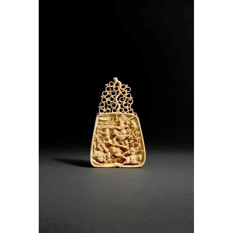 λ A FINE CHINESE IVORY GOURD-SHAPED PLAQUE