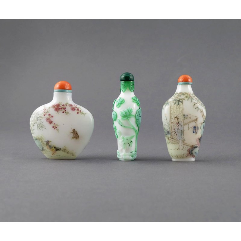 λ THREE CHINESE GLASS SNUFF BOTTLES