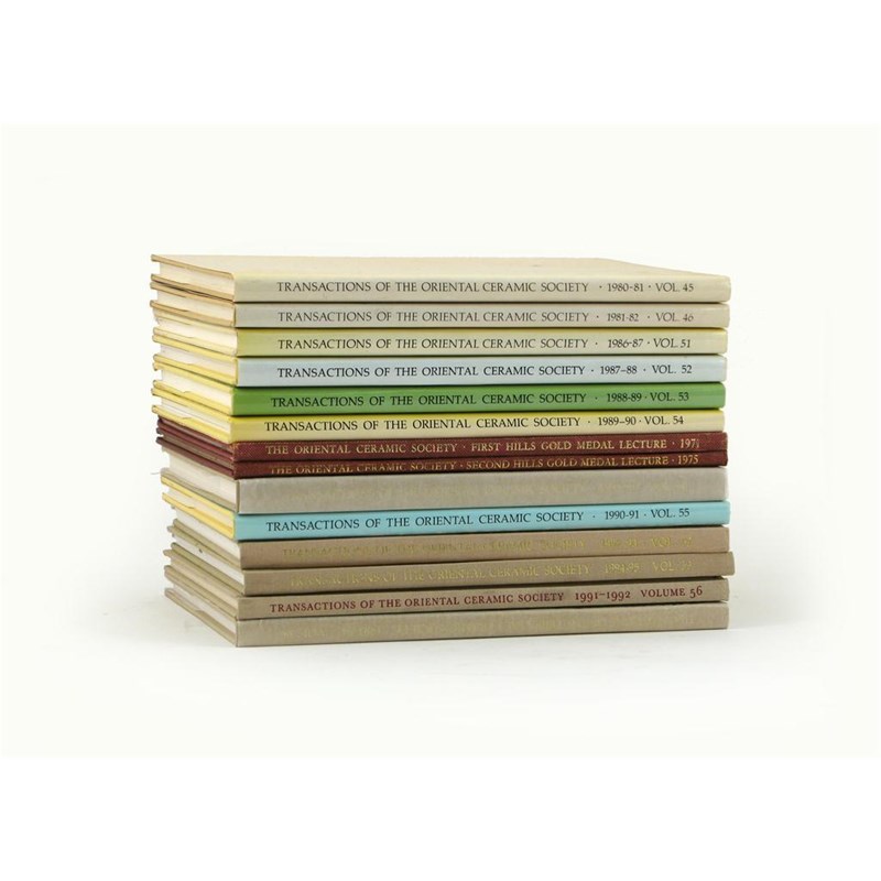 Literature: thirty seven volumes of the Transactions of the Oriental Ceramic Society, vols. 21,22, 25-36, 40-60, and two other volumes. (37)