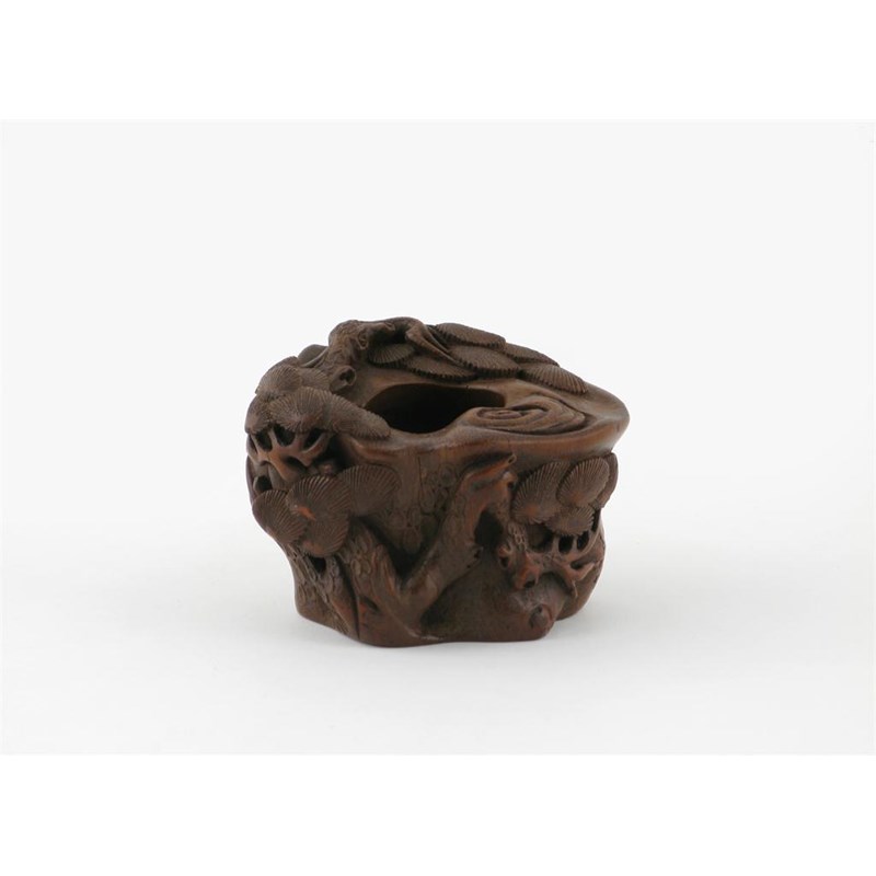 A Chinese bamboo brush washer 19th / 20th century, formed as a section of pine around which branches and needles grow, 11cm.