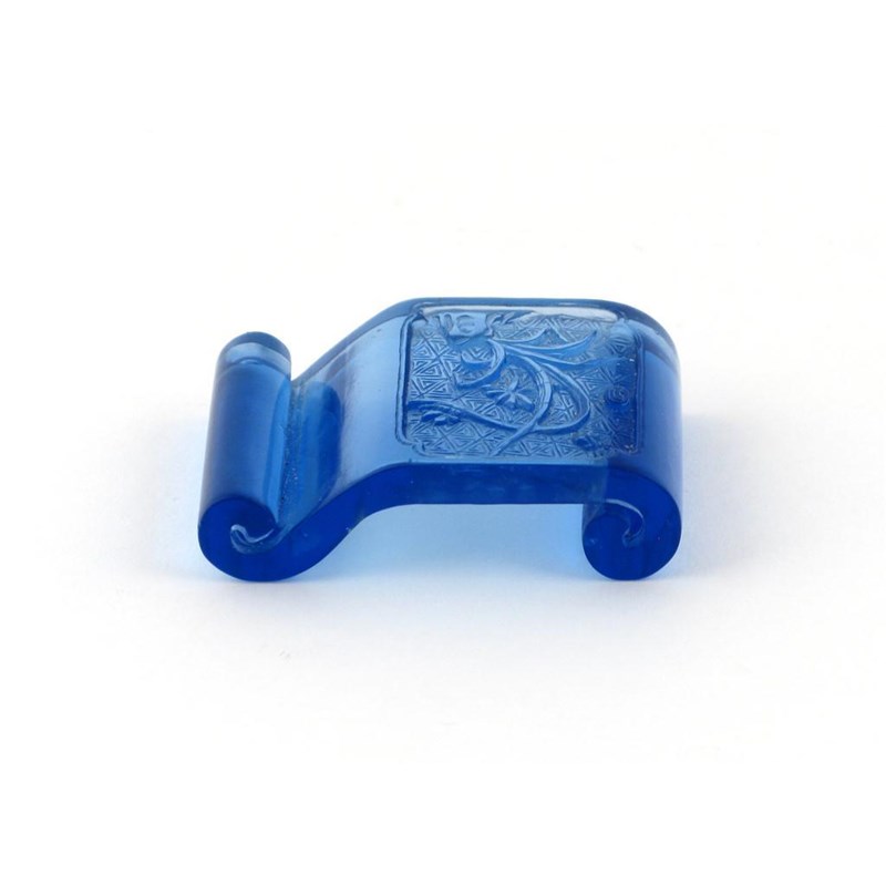 A Chinese Beijing blue glass brush rest four character Qianlong mark but later, decorated with a panel of leaves on a diaper ground, 6.2cm.