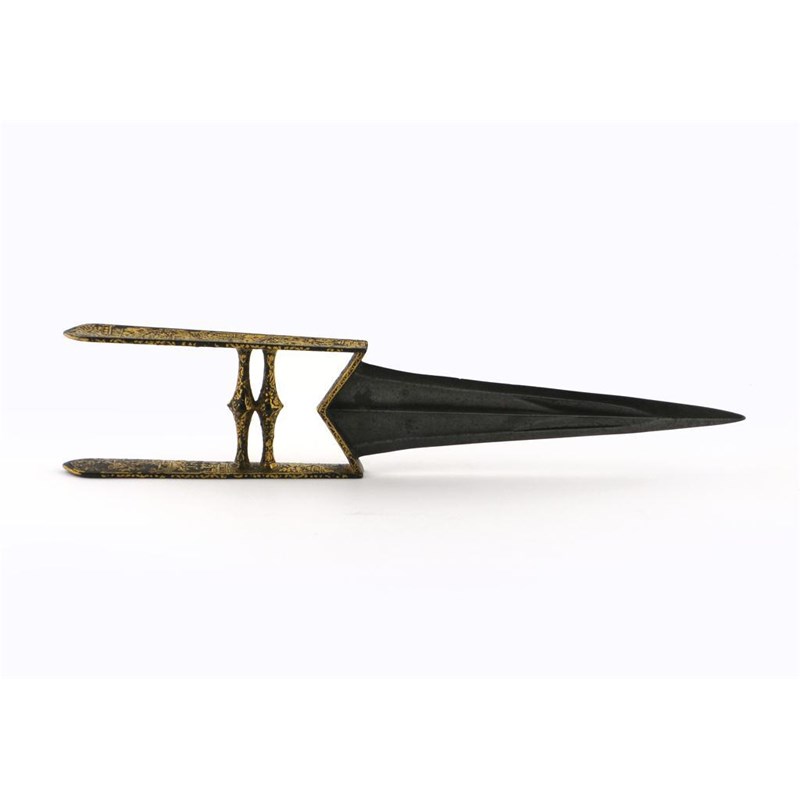 An Indian Katar push dagger the handle decorated in gilt with a continuous floral design, 36cm.