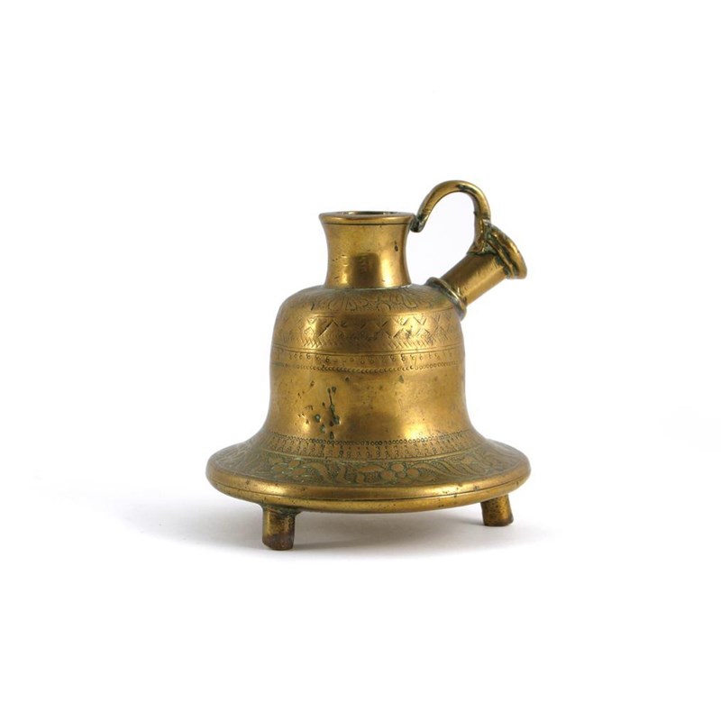 A small Middle Eastern bronze hookah base 19th century or earlier, engraved with bands of flowers and geometric designs, some damages, 12.5cm.