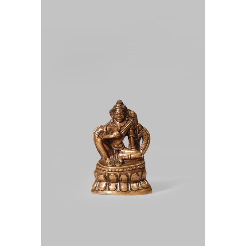 Seated in lalitasana, wearing a dhoti and a headdress adorned by three skulls, with a lotus spray to her left shoulder, raised on a double lotus throne, 9cm, 271g.