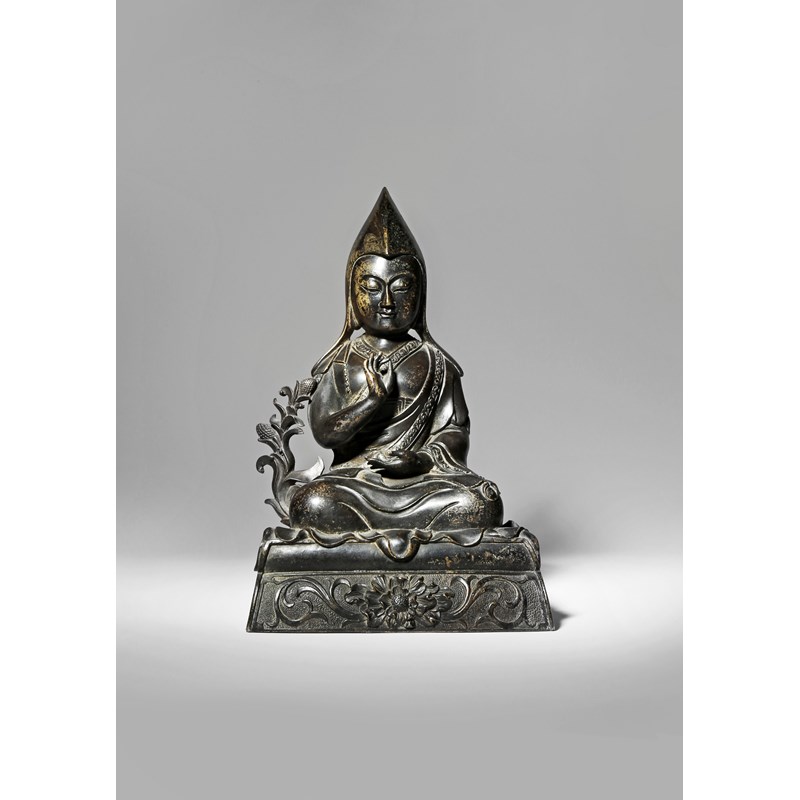 A TIBETAN BRONZE FIGURE OF A LAMA OF THE GELUKPA ORDER