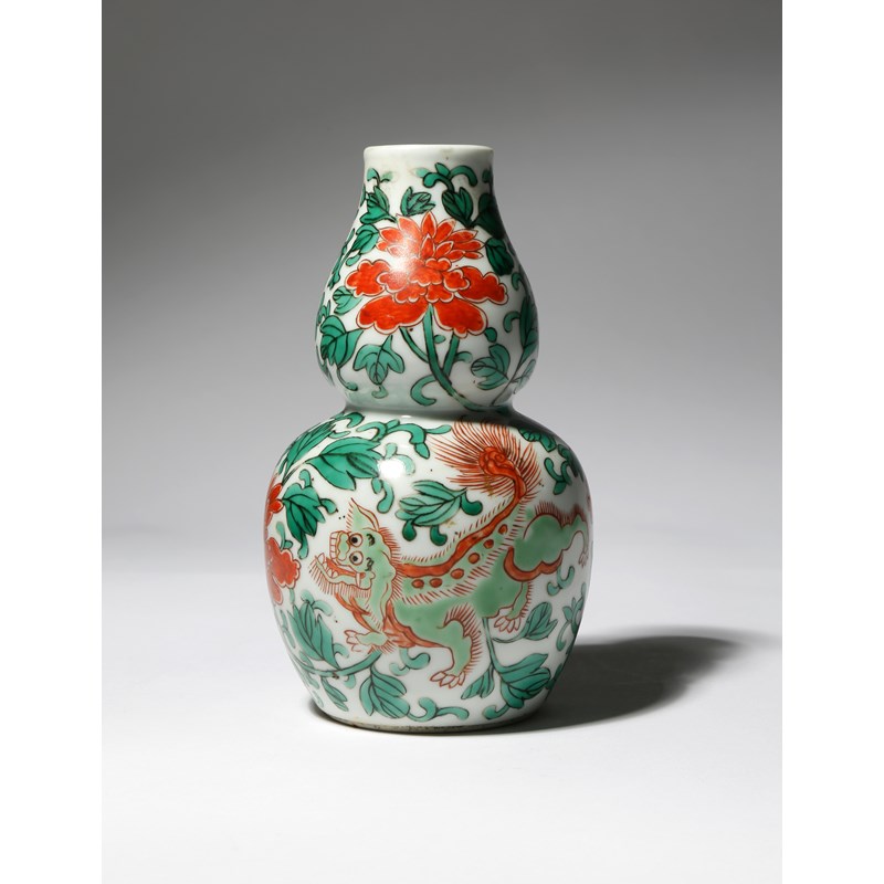 A CHINESE WUCAI GOURD-SHAPED VASE, HULUPING