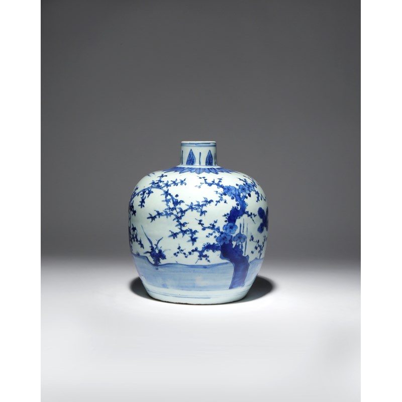 A CHINESE BLUE AND WHITE 'THREE FRIENDS OF WINTER' JAR WANLI 1573-1620 The ovoid body painted...