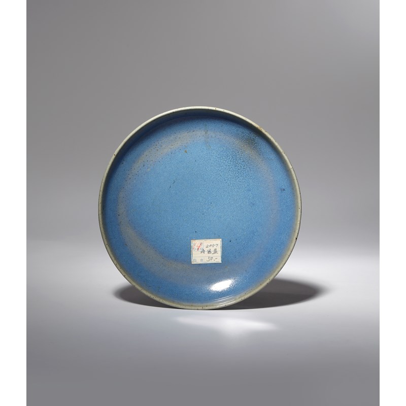 A CHINESE JUN-TYPE DISH QING DYNASTY Coated in a crackled blue glaze with hints of lavender
