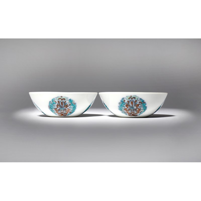 A PAIR OF SMALL CHINESE DOUCAI TEA BOWLS