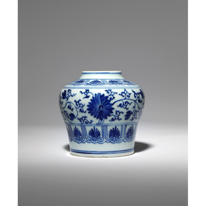 A SMALL CHINESE BLUE AND WHITE JAR QING DYNASTY OR LATER The exterior painted in underglaze blue...