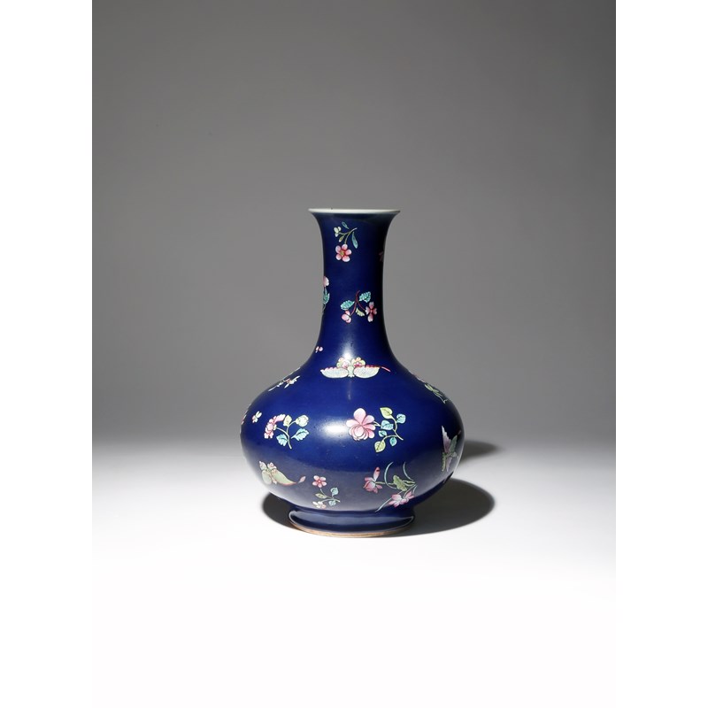 A CHINESE FAMILLE ROSE BLUE-GROUND VASE