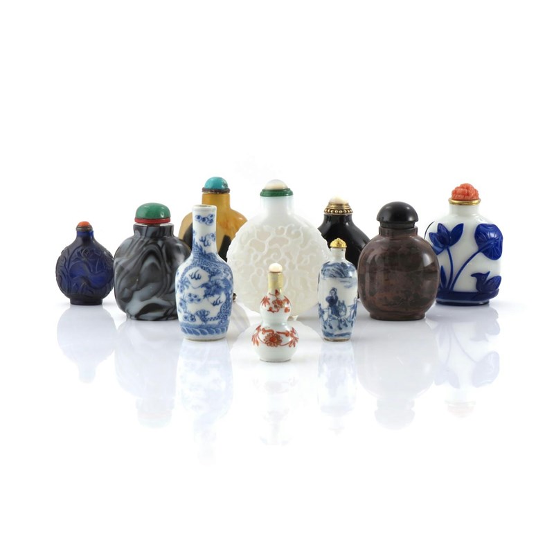 TEN CHINESE SNUFF BOTTLES 18TH AND 19TH CENTURIES In porcelain and glass