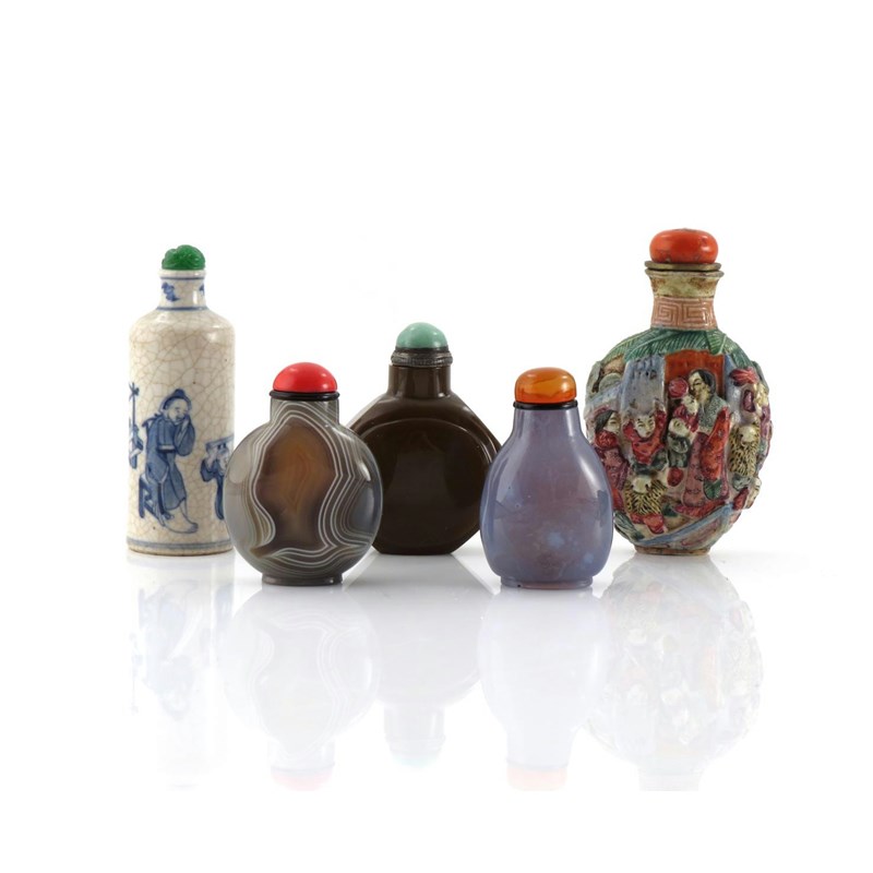 FIVE CHINESE SNUFF BOTTLES