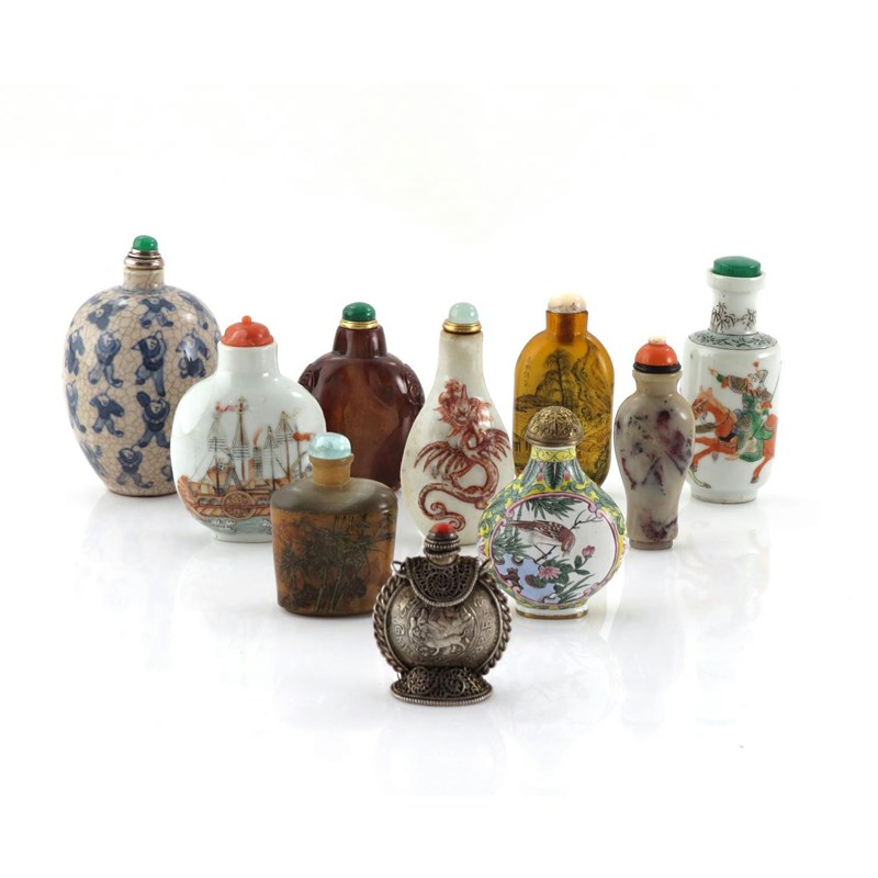 TEN CHINESE SNUFF BOTTLES 19TH AND 20TH CENTURIES In porcelain