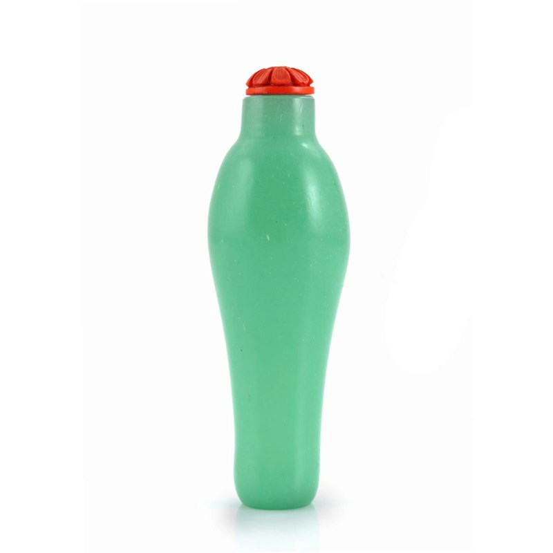 A CHINESE GREEN GLASS SNUFF BOTTLE