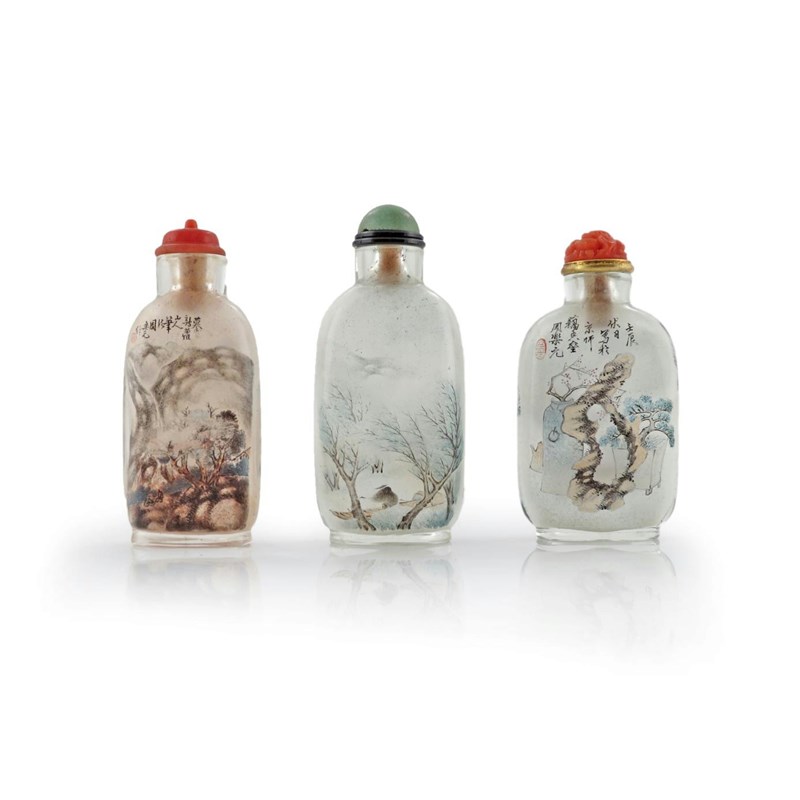 THREE CHINESE INTERIOR DECORATED SNUFF BOTTLES 19TH/20TH CENTURY Two by Zhou Le Yuan