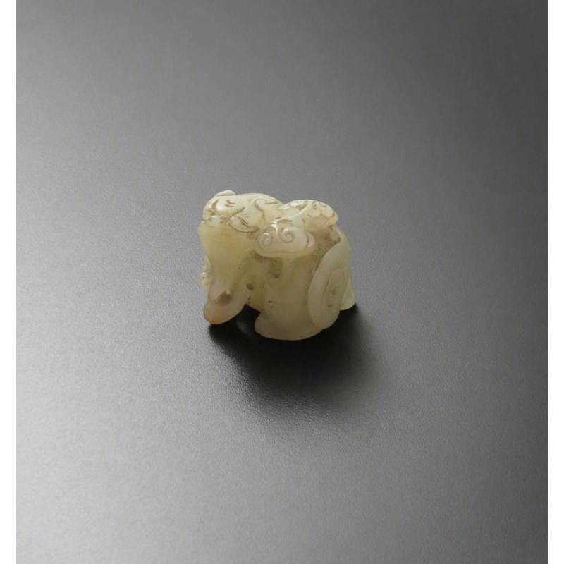 In a crouching position, his head raised with a lingzhi fungus clasped in his jaws, 3.7cm.