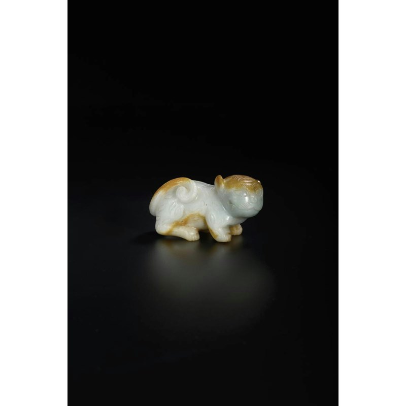 AN UNUSUAL CHINESE JADEITE CARVING OF A TIGER QING DYNASTY Crouching with its head turned...