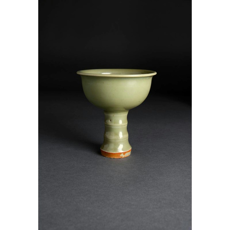 A CHINESE LONGQUAN CELADON STEM CUP MING DYNASTY C.15TH CENTURY The plain ovoid body with a...