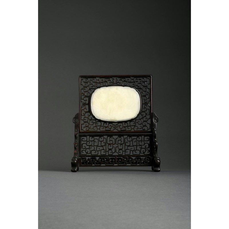 A SMALL CHINESE RETICULATED JADE-MOUNTED TABLE SCREEN