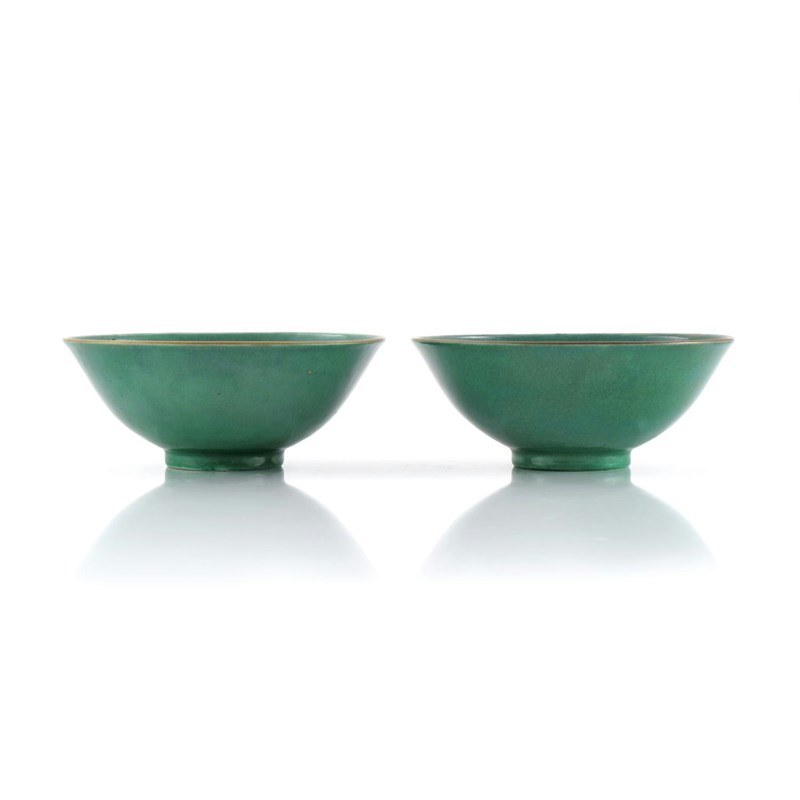 A PAIR OF CHINESE GREEN GLAZED BOWLS