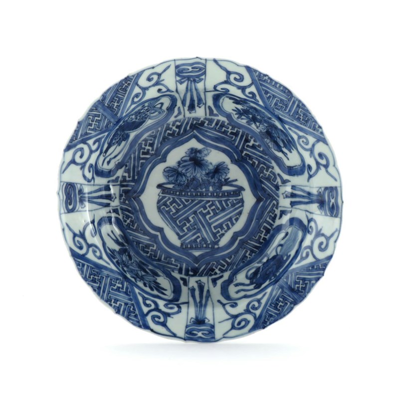 A CHINESE KRAAK PORCELAIN KLAPMUTS BOWL LATE MING DYNASTY Painted with a central vase of...