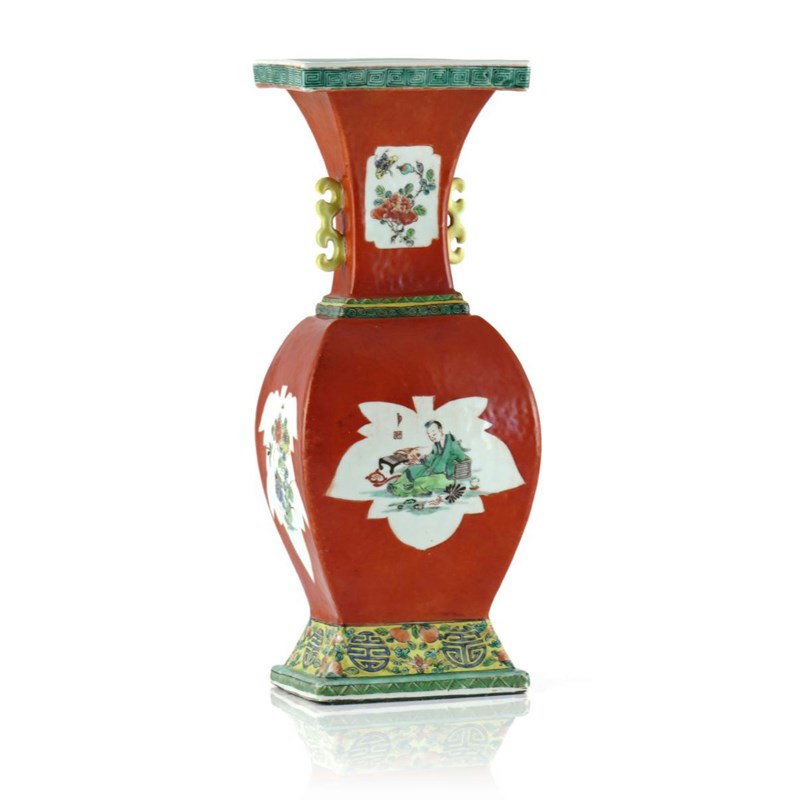 十八世紀 珊瑚紅地開光人物紋瓶