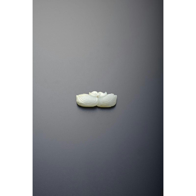 A CHINESE PALE CELADON JADE CARVING OF A PAIR OF MANDARIN DUCKS 19TH CENTURY Facing one another...