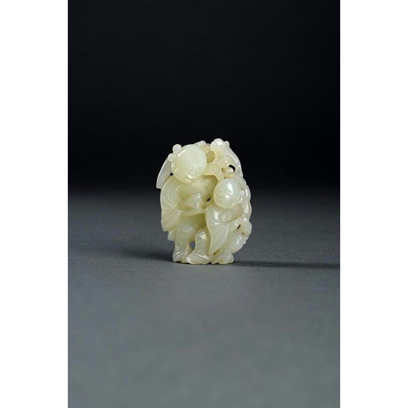 A SMALL CHINESE PALE CELADON JADE CARVING OF TWO BOYS 18TH/19TH CENTURY Standing with their heads...