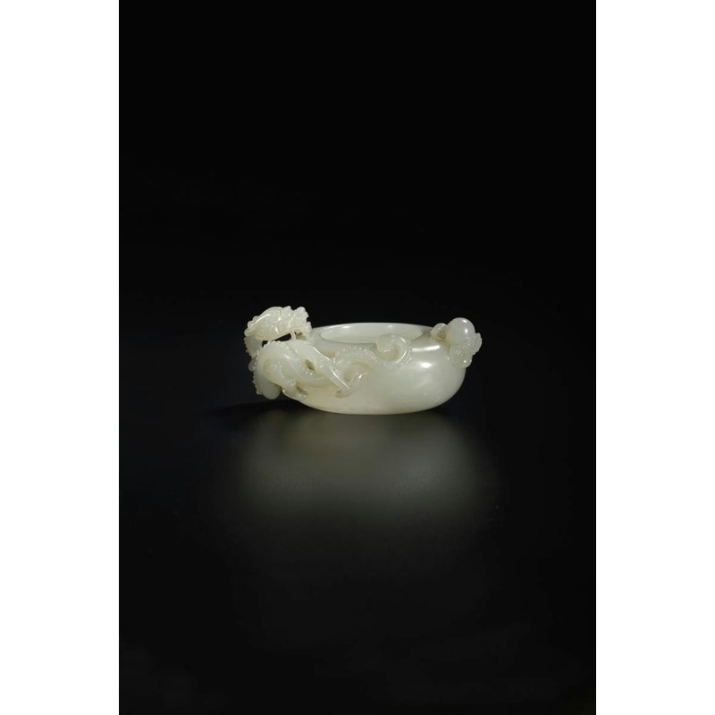 清乾隆 白玉雕蒼龍戲珠筆洗