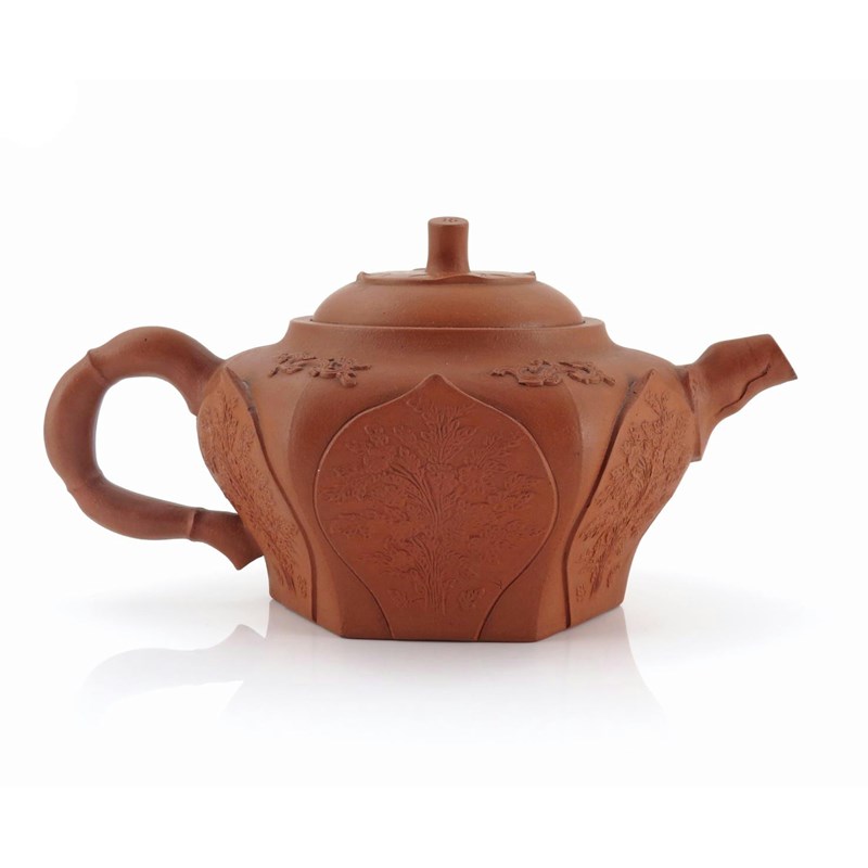 A CHINESE YIXING LOTUS TEAPOT AND COVER