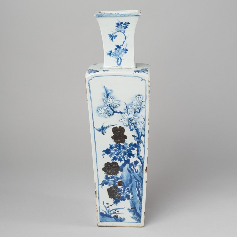 清康熙 青花釉裡紅四季花卉紋方瓶