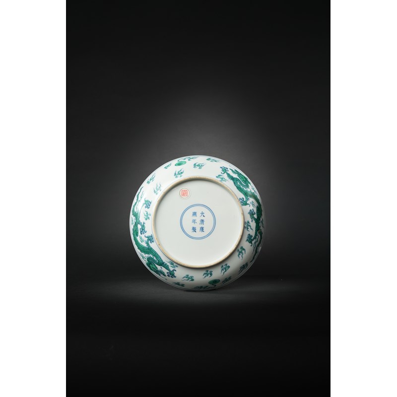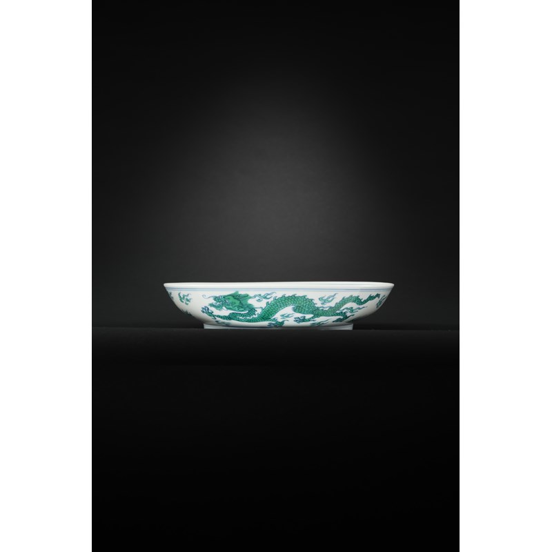 A RARE CHINESE GREEN-ENAMELLED 'DRAGON' DISH