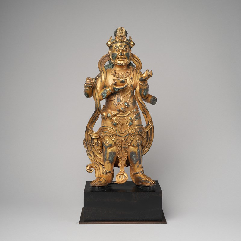 A LARGE CHINESE GILT-BRONZE DALI KINGDOM-STYLE FIGURE OF MAHAKALA