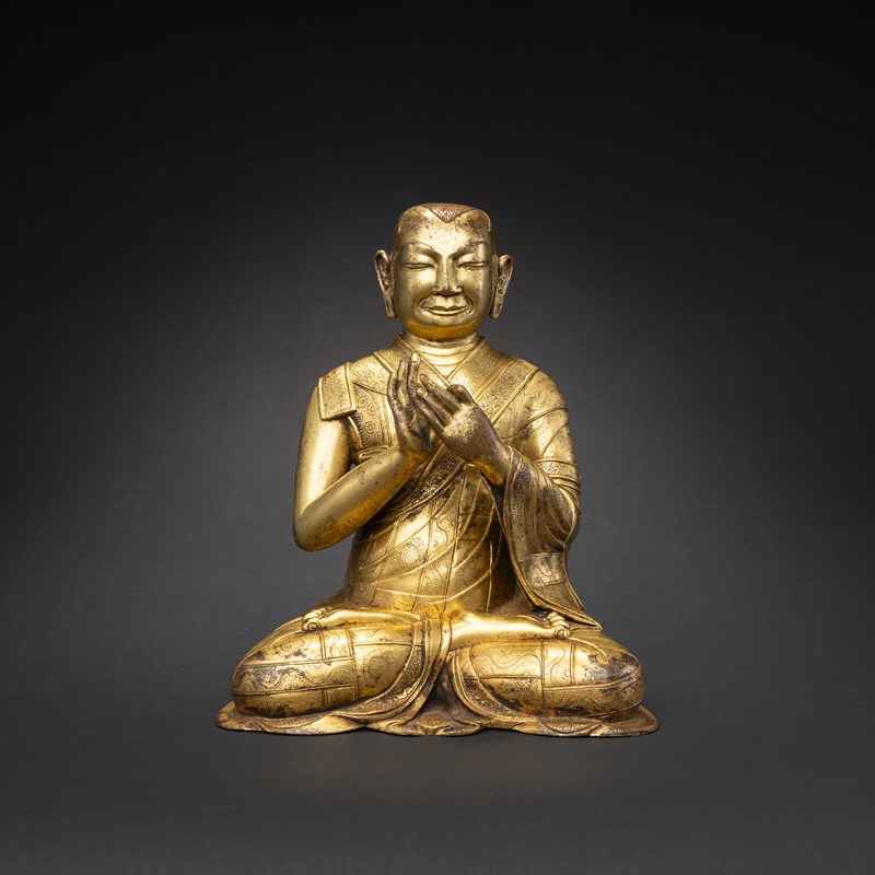 A LARGE TIBETAN GILT-BRONZE FIGURE OF A LAMA